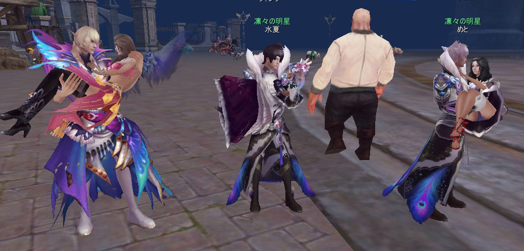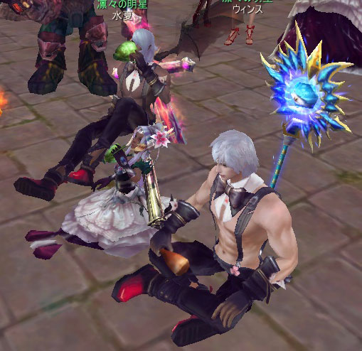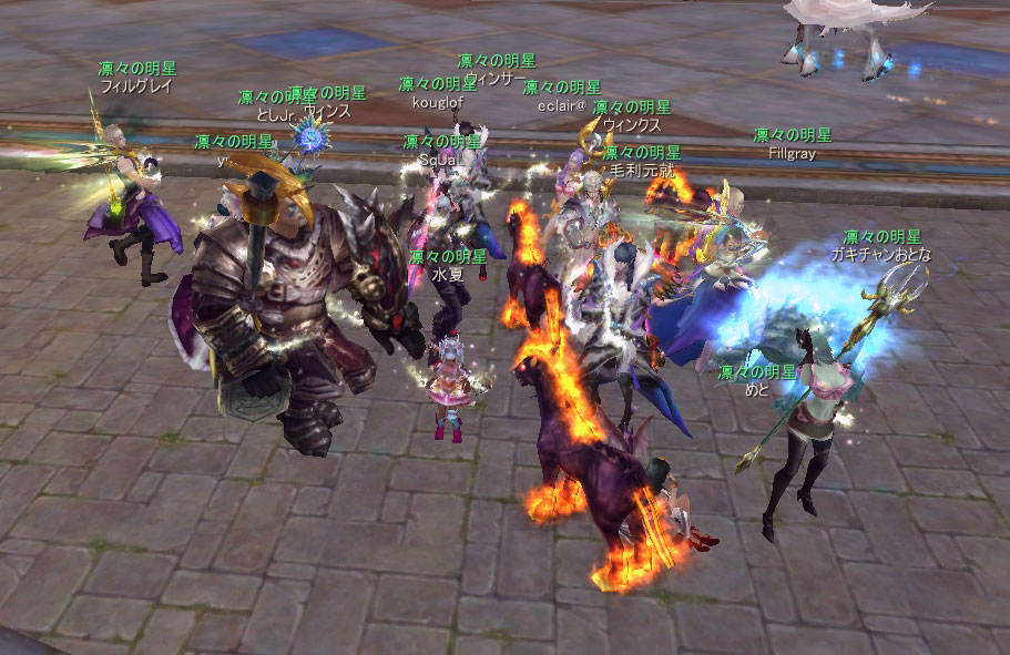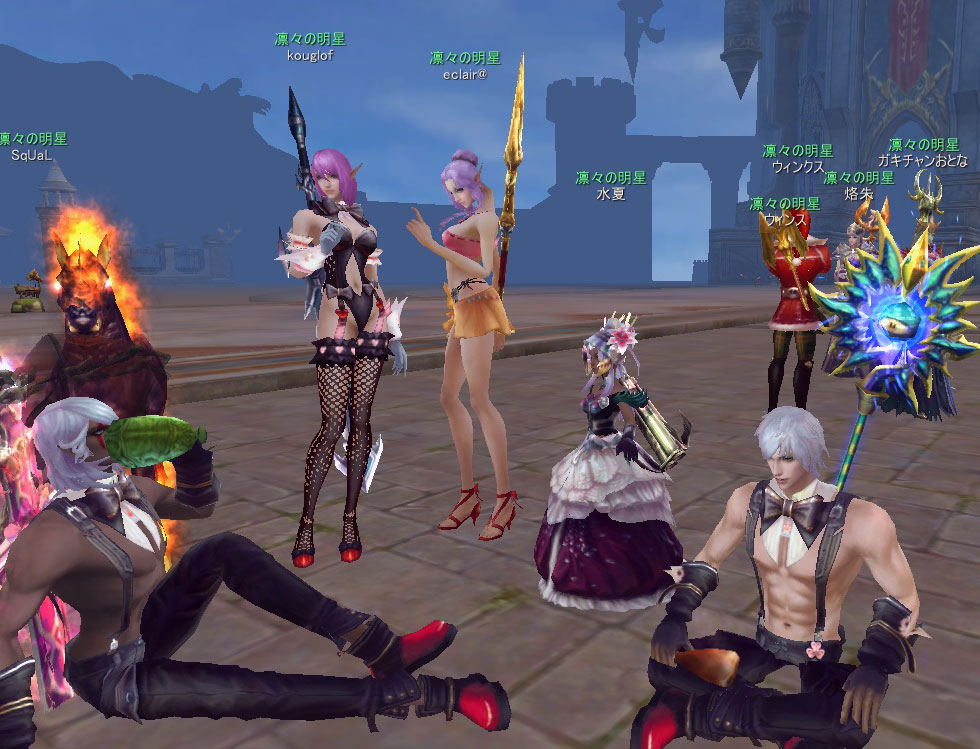 SSじゃわかりにくいですが、プリバドフィル、ウィン3兄弟、エクレアシスターズのダンスの動きはぴったり合っております。うちのギルドの名物のひとつだと思っています。