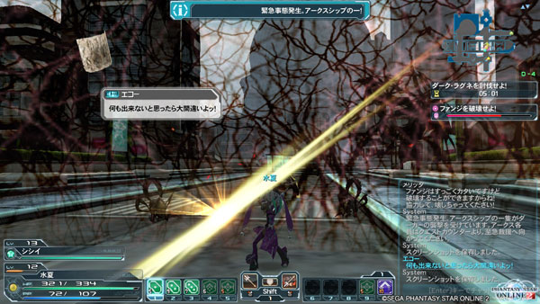 ダーカーはわらわら沸くわ攻撃は前方範囲で連続で飛んでくるわ、初見で相当きつかったです。ゼノいなかったらさすがに死んでたかもしれない。