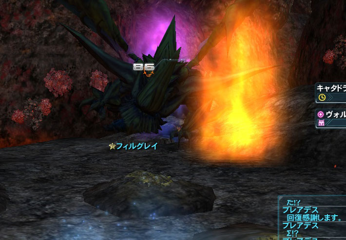 魔方陣を3つ出してきます。右にいるといいらしいのですが、とりあえず何か把握する前にボスが死にました。超火力PTすさまじい。